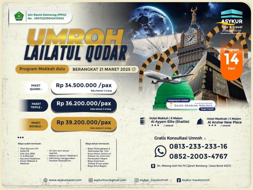 - Biaya Makan selama di Makkah Rp. 2.000.000